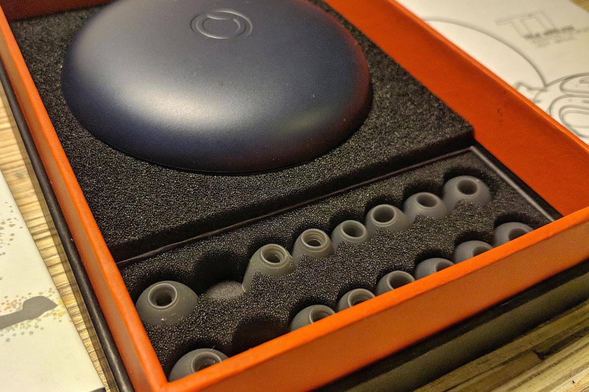 В комплекте: объёмная инструкция (для GGMM T1 только 4 языка, русского нет), гарантийный талон, короткий (50см) microUSB кабель, бокс с наушниками и аж 8 пар (!) разных амбушюр. Они различаются по диаметру и высоте. Тонкие. ;(
