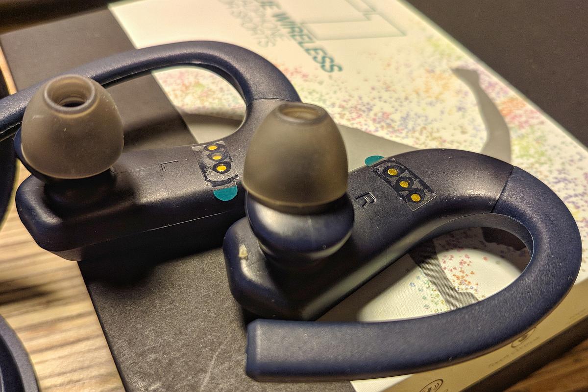 GGMM T1 позиционируются, как гарнитура для занятий спортом. Отсюда влагозащита IPX7 (как бы кратковременное погружение до метра, но плавать нельзя 😉 ) и такая необычная форма. Для кого-то она станет противопоказанием к покупке, но лично я проблем с установкой наушников не испытываю. Наловчился в течение дня. 😉 Те-же GGMM W710 с их упорами для меня куда хуже.
