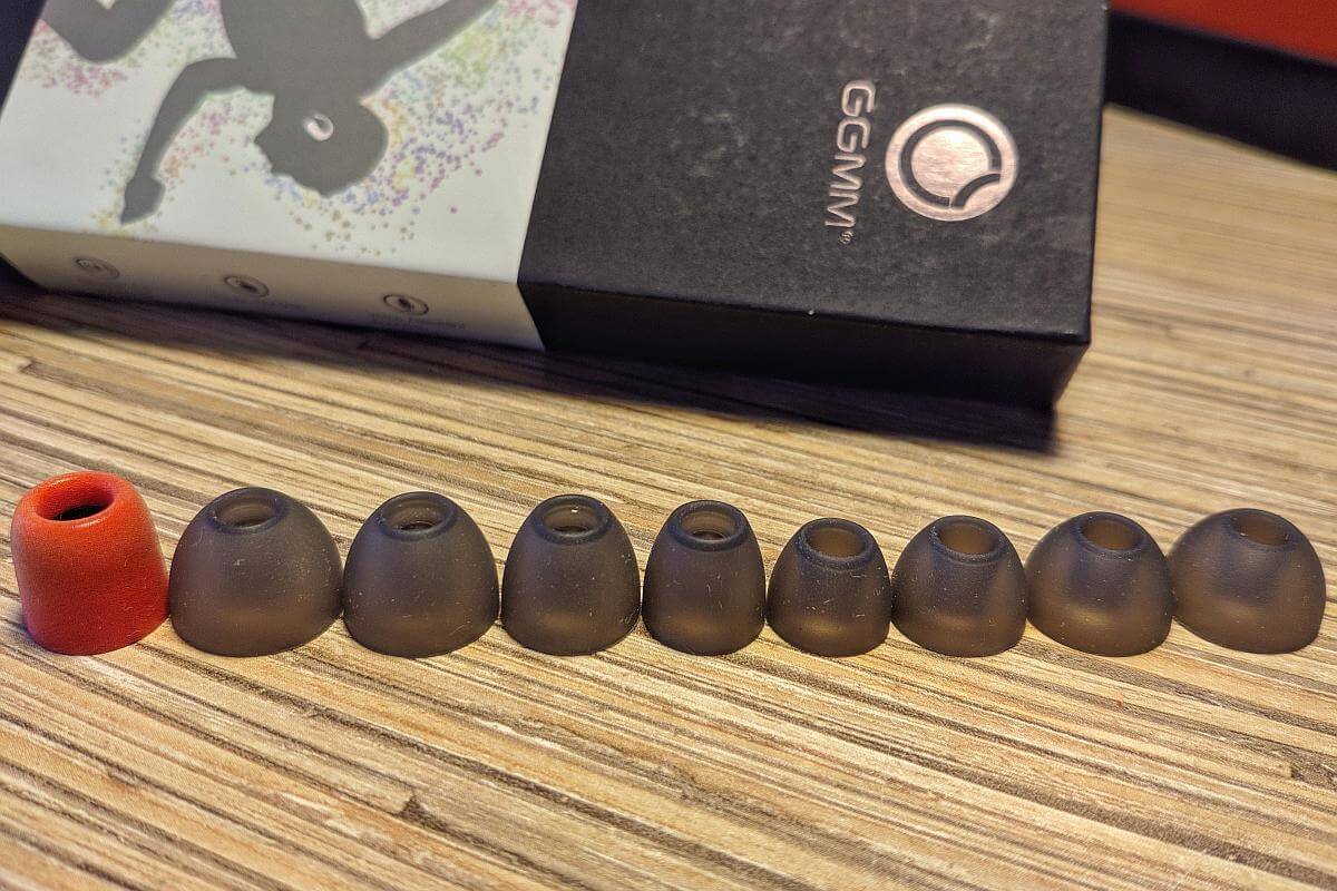 Родные амбушюры, как и в предыдущих GGMM не понравились сразу. Их много – это здорово, но какие-то они тонкие и звонкие. Как и все “силиконки” для меня. Давал им шанс несколько раз за все дни тестирования, но в итоге привычно заменил на «пенки». С «пенками» звук более мягкий и упругий.