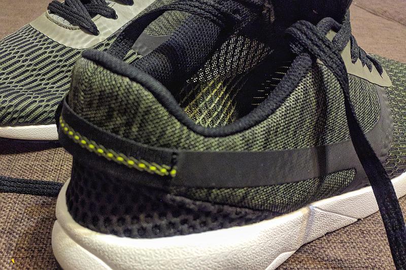 Верх, как и полагается любым кроссовкам, состоит из кучи деталей. Места их соединения аккуратно прошиты. Качественно и без изъянов. Критичные места усилены и проклеены. Всё хорошо.