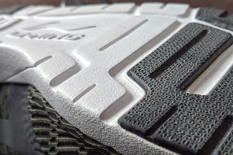 У кроссовок – дышащий верх из текстильной сетки, армированный мононитью (что бы это у данной модели не значило 😉 ). То есть кроссовки отлично продуваются, но остаются достаточно прочными.